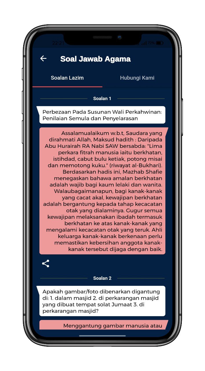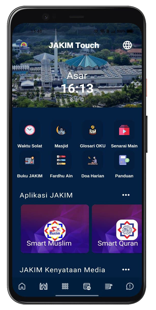 Antara kemudahan dan fungsi utama yang terdapat dalam aplikasi ini ialah Waktu Solat bagi seluruh Malaysia, Arah Kiblat, Soal Jawab Agama, Doa Harian, Koleksi Bacaan, Infografik, Tasbih Digital, Lokasi Masjid, Yaasin & Tahlil serta lain-lain lagi.